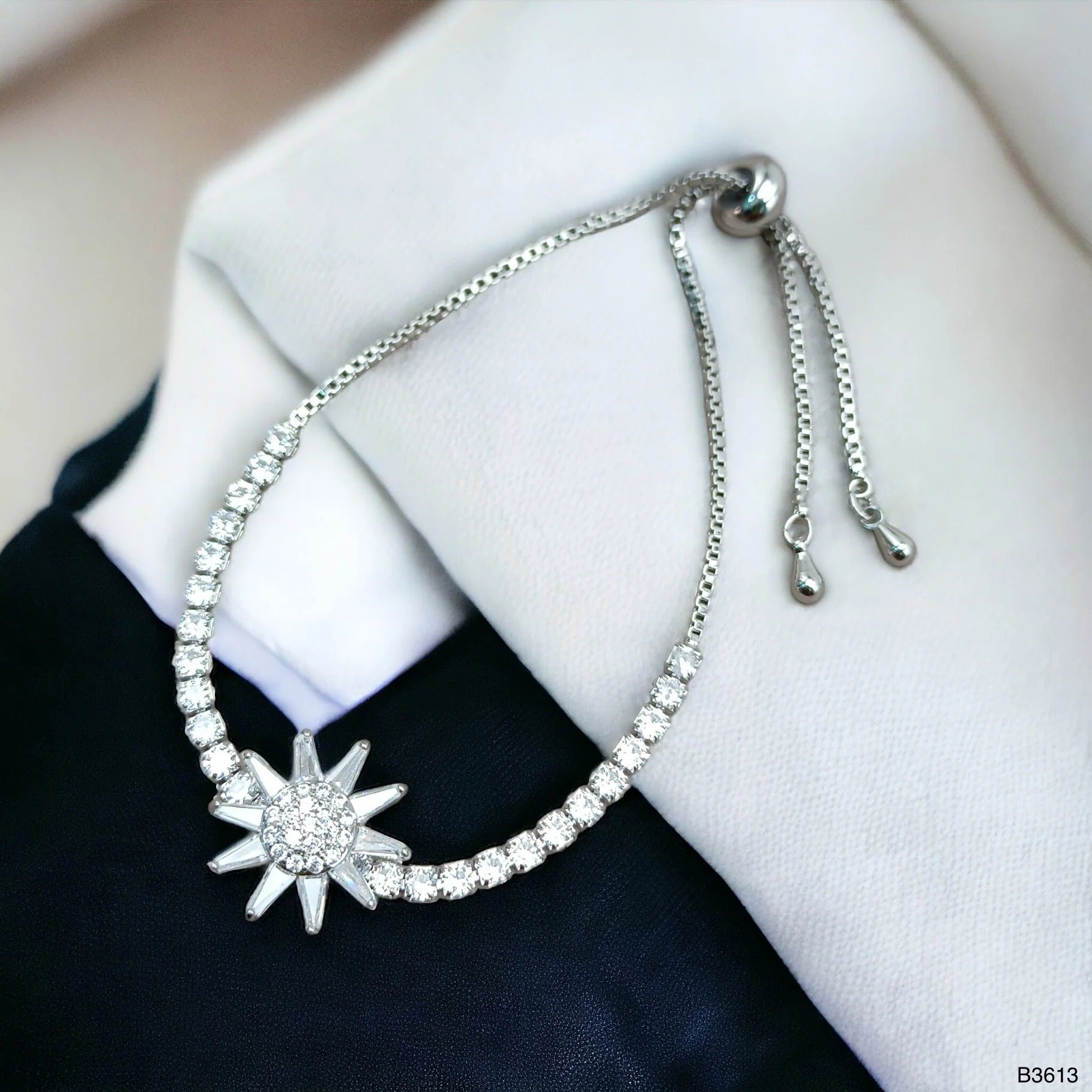 Rotating Flower Silver Adjustable Slider Bracelet