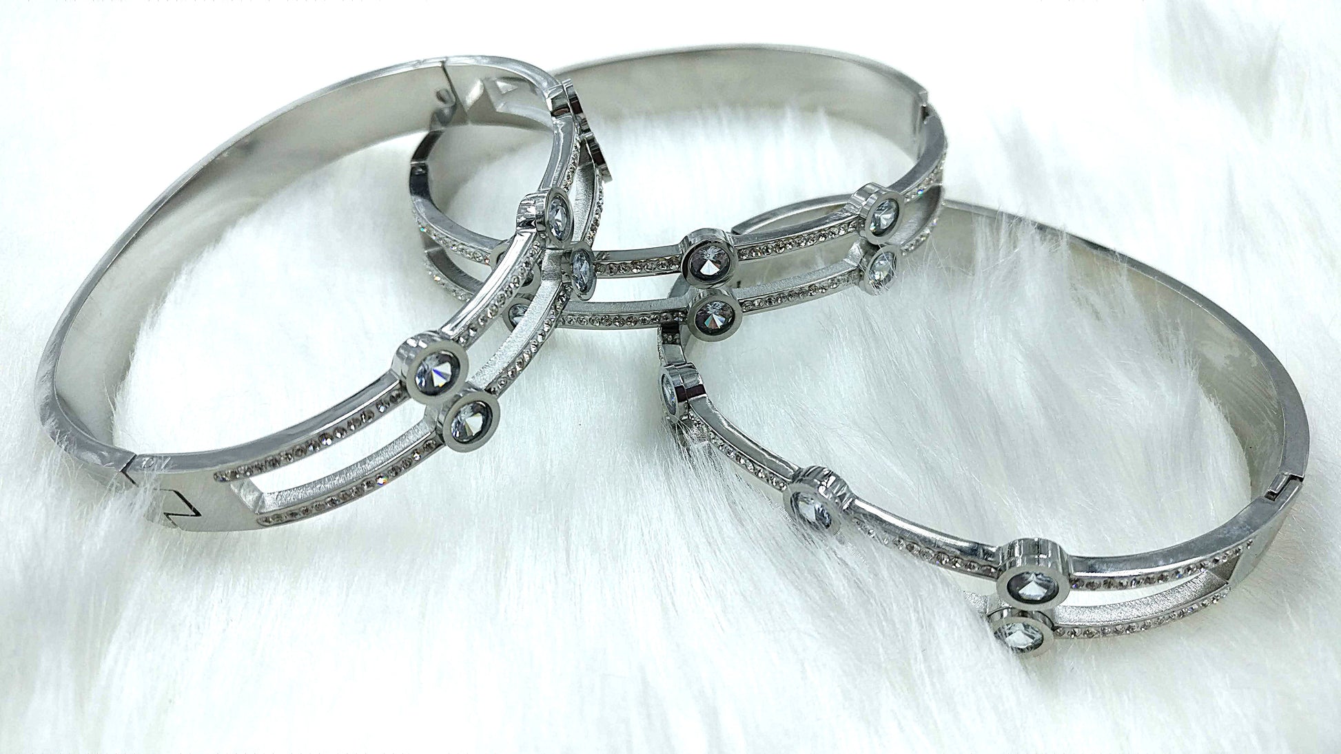Solitaire Eternity Silver SS Openable Kada Bracelet