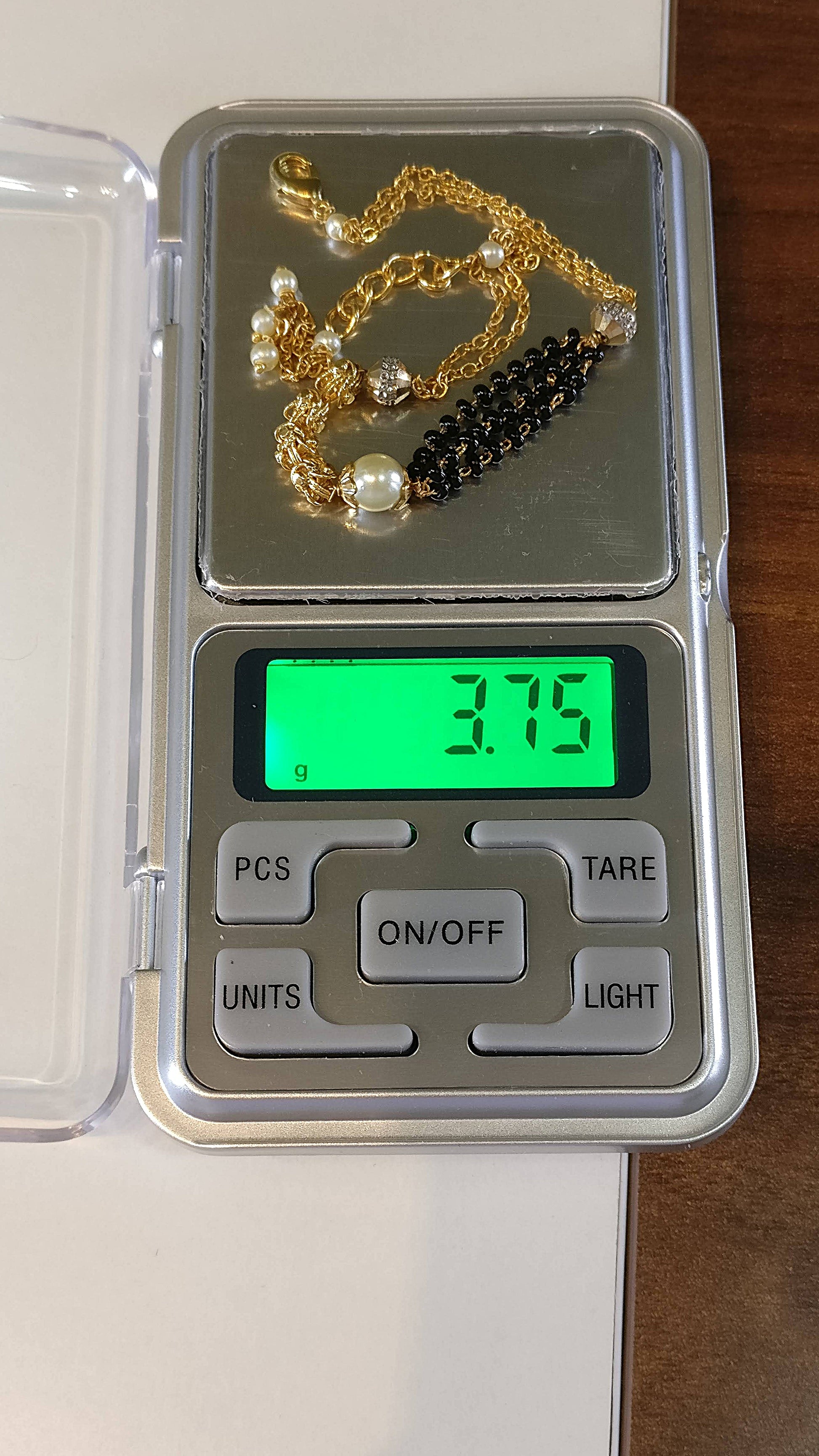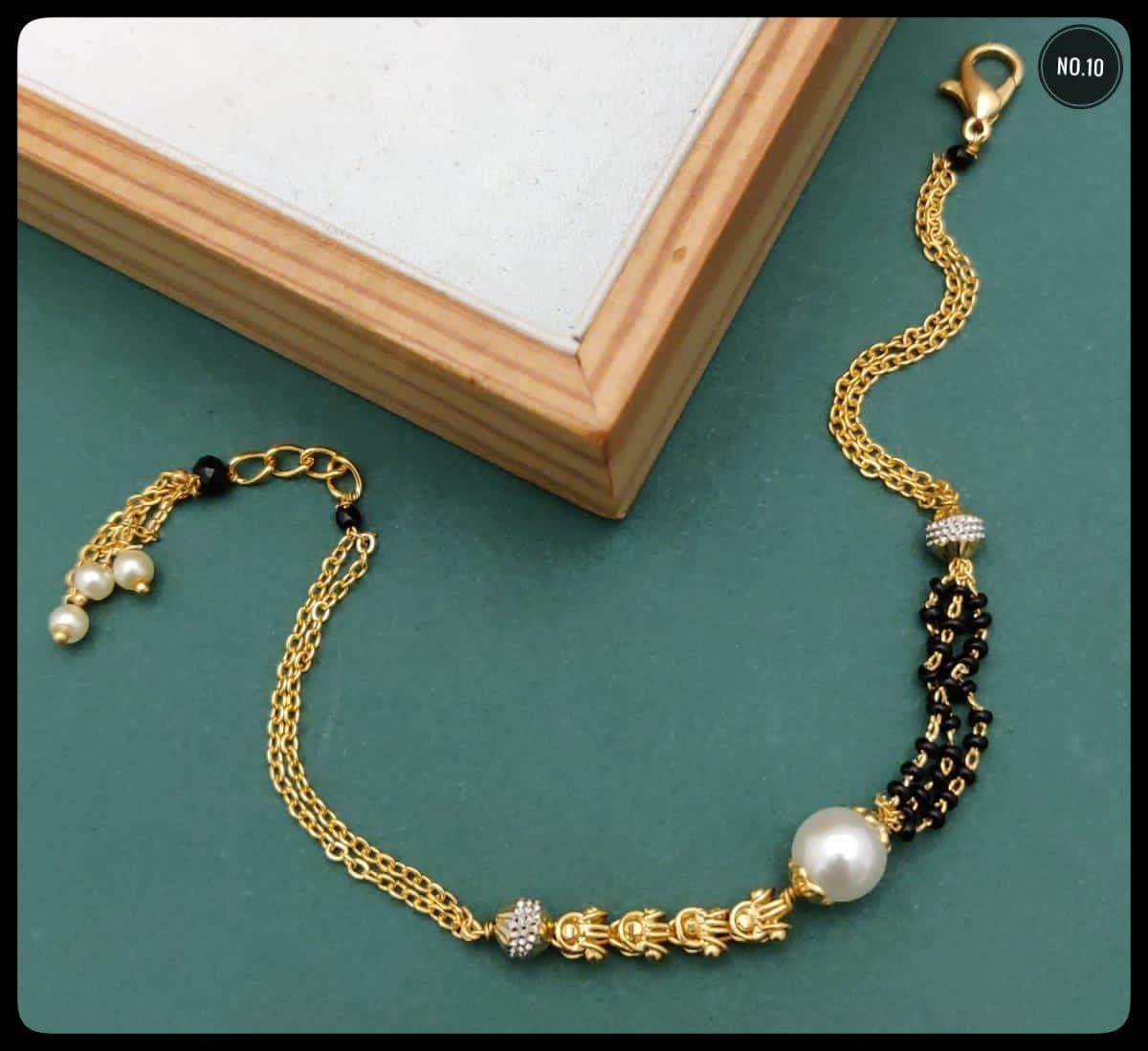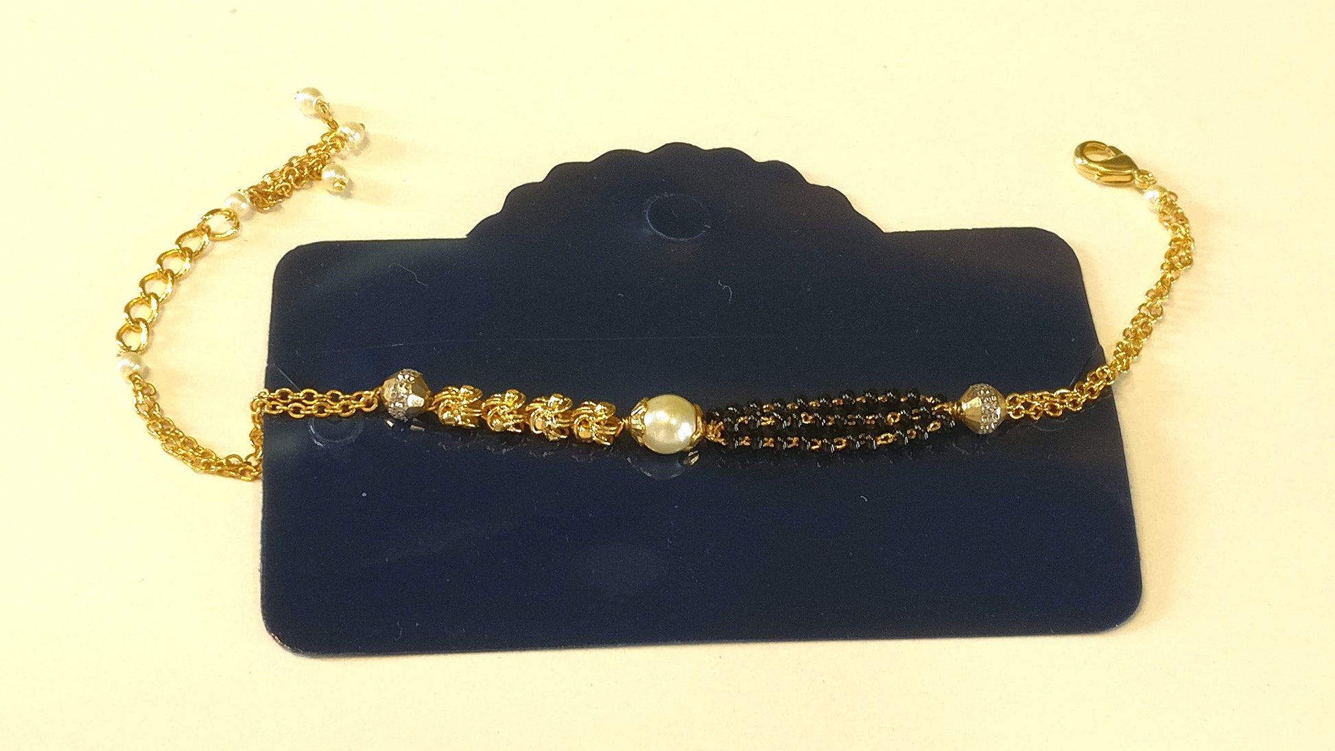 Three Beads Pearl Copper Gold Black Slider Hand Mangalsutra